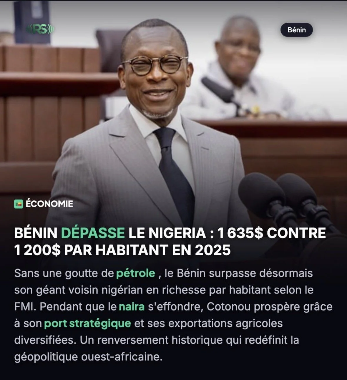 Le Bénin, dépasse le Nigéria : 1635$ contre 1200$ en 2025